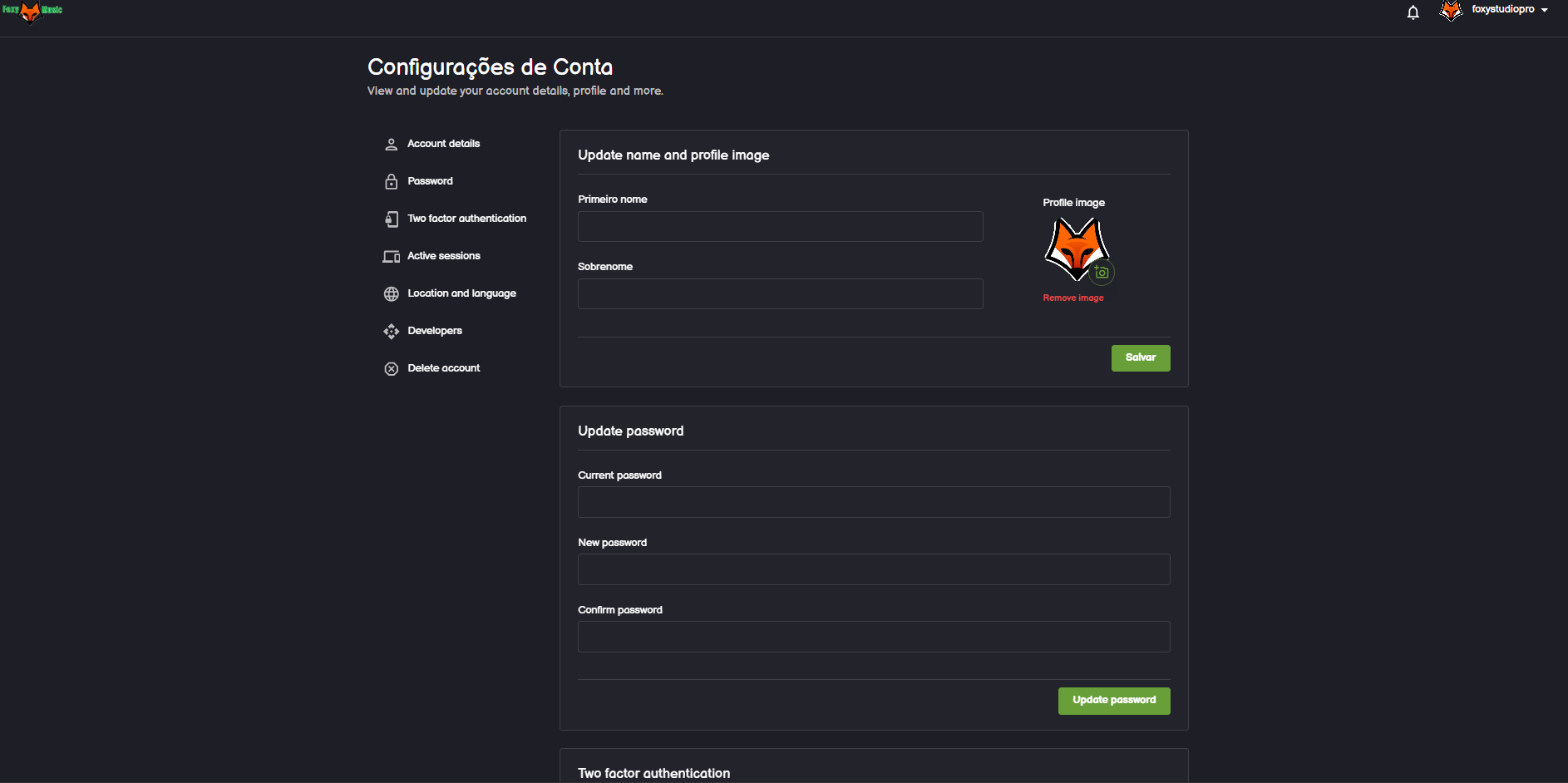 Ao clicar em “Configurações de Conta”, abre uma nova página one encontra todas as informações relativas a tua conta. Podes alterar o avatar, mudar o nome de usuário exibido, alterar a segurança da tua conta entre outras opções úteis.