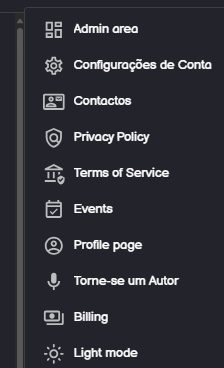 No canto superior direito, junto ao nome de usuário, encontra um menu com diversas opções, entre elas “Configurações de Conta”.